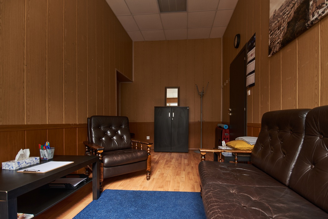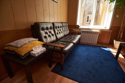Кабинет в сдержанных тонах, изолирован двойными дверями, имеет хорошую шумоизоляцию, оснащен кожаным диваном (до 3 человек) и мягким уютным креслом, планшетами для бумаги и другими письменными принадлежностями. Также в кабинете и зоне ожидания перед кабинетом есть бумажные салфетки, чай, вода, стаканчики, различные уровни подсветки. Благодаря размеру кабинета и большому количеству растений создается комфортная атмосфера для работы.