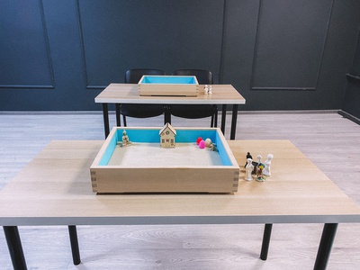 Можем добавить в кабинет (по запросу): кольцевая лампа, дополнительные стулья, массажная кушетка и одноразовые простыни, песочница Юнга, пледы и подушки, письменные столы