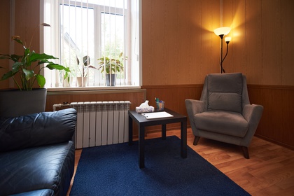 Что есть в кабинете: кабинет в сдержанных тонах, изолирован двойными дверями, оснащен удобным мягким кожаным диваном (вместительность до 2 человек), уютным креслом, теплыми пледами и подушками, небольшим столиком, а также торшерами с теплым, комфортным для проведения консультации, светом.