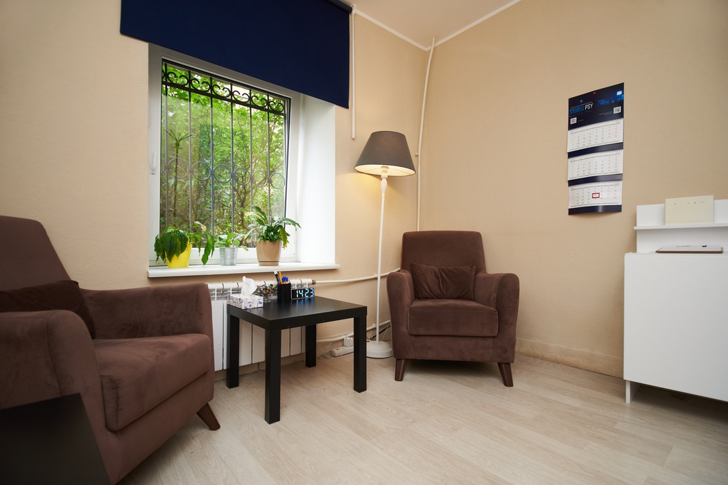 Небольшой уютный кабинет с интерьером в теплых оттенках, в котором создана благоприятная атмосфера для комфортного проведения встреч. В соседних кабинетах не будет лишних звуков, шума, громких аудиозаписей, т.к. в Психологическом центре на Грибоедова работают только психологи.