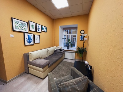 Уютный кабинет, расположенный на 2 этаже студии, оснащен всем необходимым для комфортной работы в приятной и атмосфере. Теплые тона интерьера и живые растения создают спокойную домашнюю обстановку для занятий.