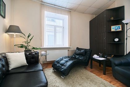 Просторный кабинет с большим количеством живых растений и интерьером в теплых тонах, расположенный в левом крыле здания с окнами во двор. Оснащен всем необходимым для благоприятной атмосферы и комфортной работы. Для подбора нужного кабинета вы можете проконсультироваться у наших администраторов.