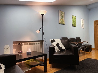 Можем добавить в кабинет (по запросу): кольцевая лампа, дополнительные стулья, массажная кушетка и одноразовые простыни, песочница Юнга.